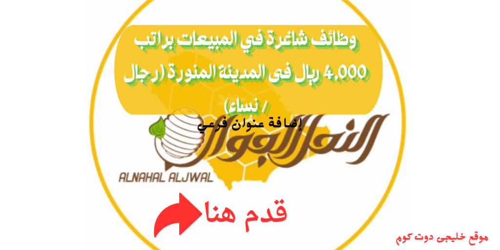 تعلن مؤسسة النحل الجوال،عبر بوابة التوظيف الرسمية، عن توفر توفر فرص عمل فى المبيعات بالمدينة المنورة (الدائري)، والتقديم للوظائف للسعوديين فقط.