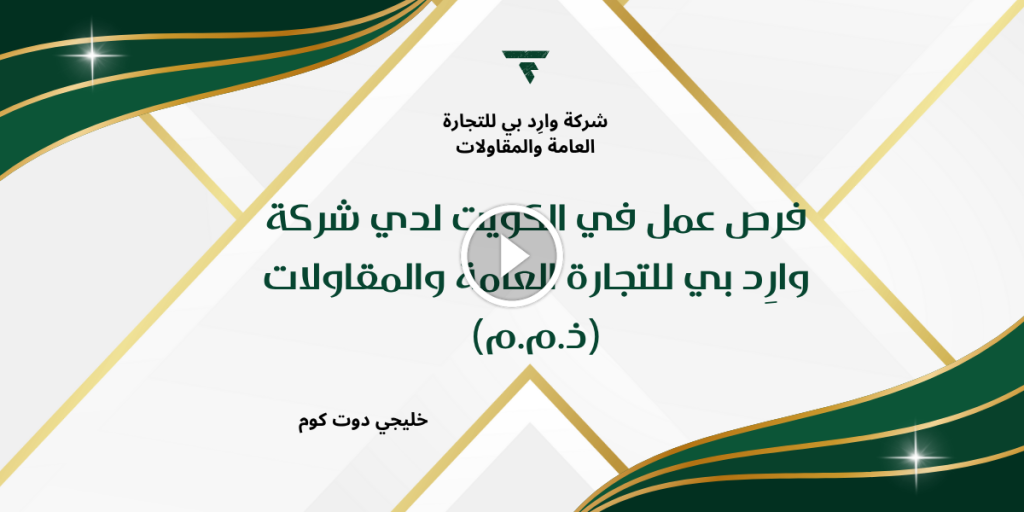 تعلن شركة وارِد بي للتجارة العامة والمقاولات (ذ.م.م) عن فرص عمل في الكويت في مجالات المبيعات والترويج والقيادة، وتدعو الكفاءات الطموحة للانضمام إلى فريق عملها النشط لتحقيق النجاح والتميز المهني في بيئة عمل احترافية تدعم التطور والنمو المستمر.