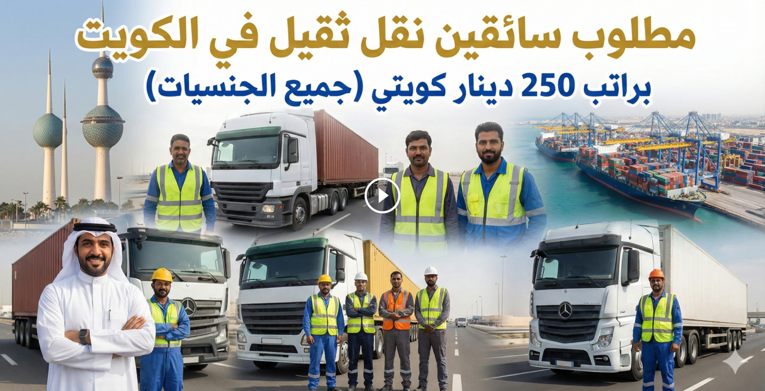 مطلوب سائقين نقل ثقيل في الكويت من جميع الجنسيات للعمل فوراً براتب 250 دينار وحوافز إضافية مع توفير السكن والمواصلات، حيث نستعرض في هذا المقال تفاصيل الوظيفة وشروط التقديم ومتوسط الرواتب.