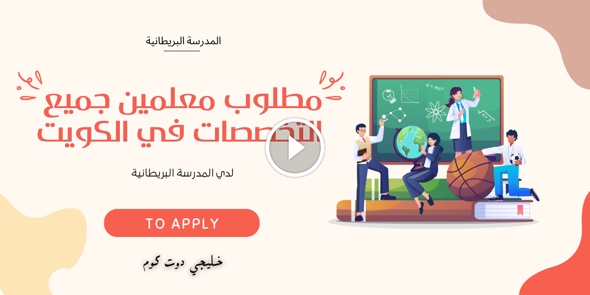 مطلوب معلمين جميع التخصصات للعمل في المدرسة البريطانية بالكويت في مختلف المراحل الدراسية، فرص مميزة للمعلمين والمعلمات من المواطنين والوافدين للانضمام إلى كادر أكاديمي متميز في بيئة تعليمية راقية.