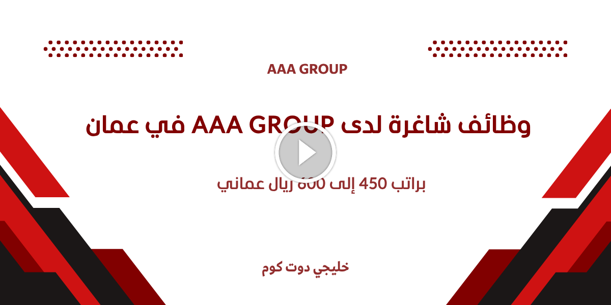 تعلن AAA Group عن وظائف شاغرة في عمان برواتب شهرية تبدأ من 450 ريال وتصل إلى 600 ريال عماني، فرصة مميزة للباحثين عن عمل في عمان للانضمام إلى بيئة عمل احترافية.