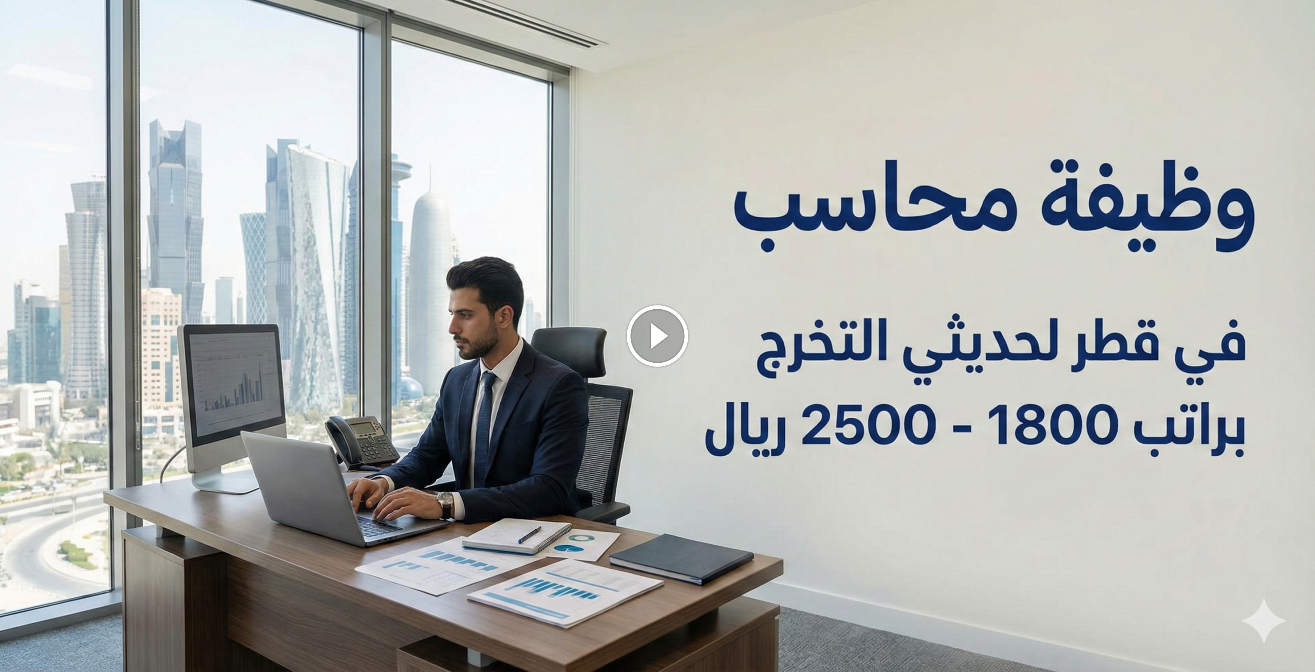 وظيفة محاسب في قطر ننشرها لكم عبر موقعنا خليجي دوت كوم، حيث تعلن إحدى الشركات في الدوحة عن فرصة عمل لمحاسب حديث التخرج للعمل بدوام كامل وبراتب يصل الي 1800 2500 ريال.