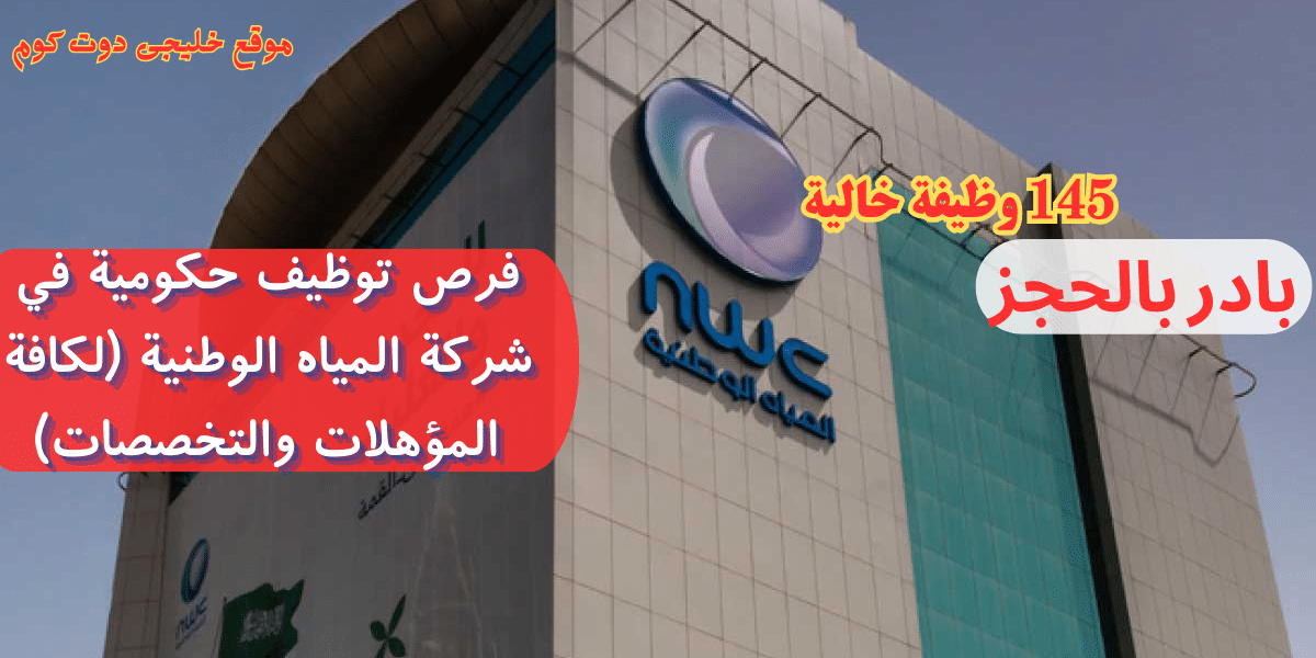 ننشر لكم من خلال موقعنا خليجي دوت كوم إعلان فرص عمل حكومية في شركة المياه الوطنية، للعمل بالمجالات الوظيفية التالية.
