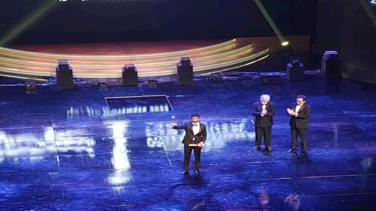 وقدمه رئيس المهرجان النجم حسين فهمي، قائلا “نمنح جائزة فاتن حمامة للتميز لفنان مصري للنخاع وصل بمصريته للعالمية”.