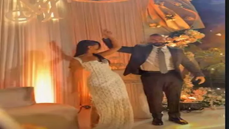 وأقيم الحفل في أجواء عائلية بحضور أسرة العروسين والأصدقاء المقربين، وظهرت العروس وهي ترقص مع عريسها، وفي فيديو آخر أثناء استقبال العريس لها بباقة من الزهور.