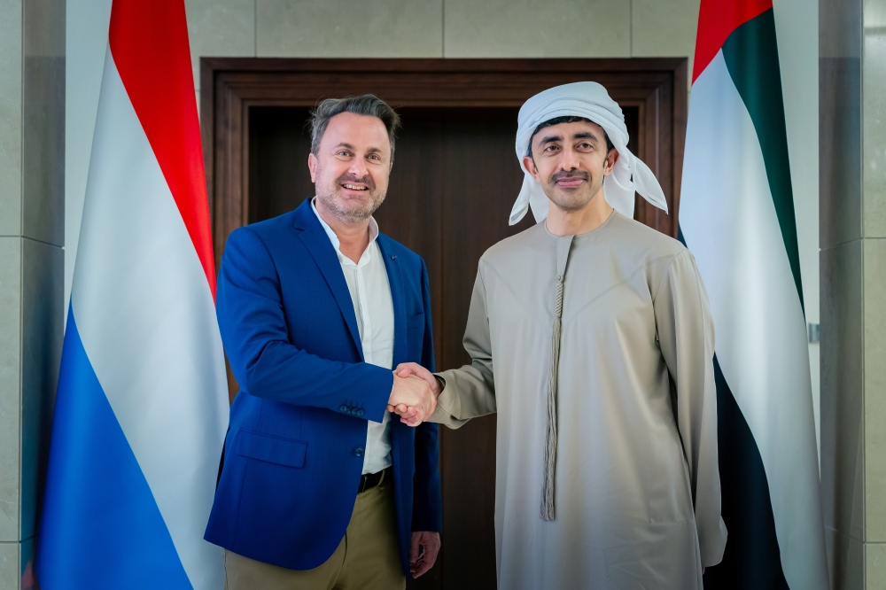 بحث سمو الشيخ عبدالله بن زايد آل نهيان وزير الخارجية وخافيير بيتل نائب رئيس الوزراء وزير الشؤون الخارجية والتجارة الخارجية وزير التعاون والشؤون الإنسانية في دوقية لوكسمبورغ علاقات التعاون وسبل تعزيزها في المجالات كافة.