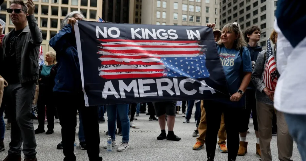 يعتزم آلاف الأميركيين المشاركة في مظاهرات “لا ملوك”، بالعاصمة واشنطن ومدن أخرى في جميع أنحاء الولايات المتحدة، السبت، احتجاجاً على ما يصفونه بأنه “مسار البلاد في عهد الرئيس دونالد ترمب”، فيما اعتبر الحزب الجمهوري الذي ينتمي إليه الرئيس أنها مسيرات “كراهية أميركا”، وفق وكالة “أسوشيتد برس”.