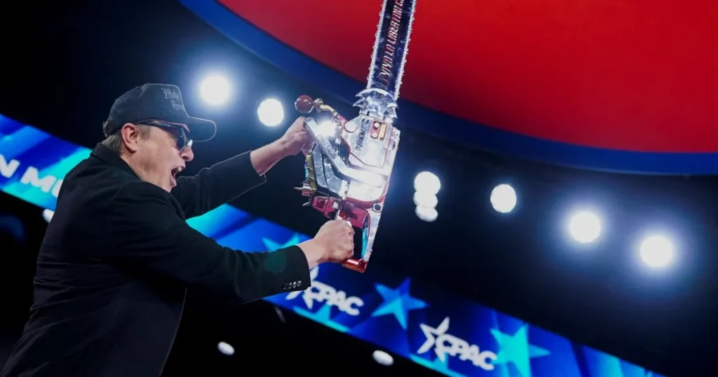 وقال ماسك، وهو يحمل منشاراً خلال مؤتمر العمل السياسي المحافظ CPAC، في منطقة ناشيونال هاربور بولاية ماريلاند الأميركية في فبراير الماضي: “هذا المنشار للبيروقراطية”.