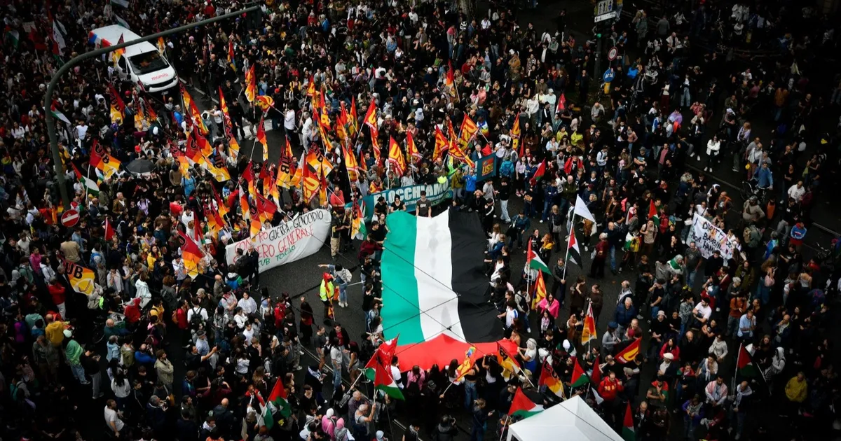 تسببت حركات إضراب واحتجاجات في إيطاليا، الجمعة، ضد حكومة جورجيا ميلوني في إلغاء عشرات الرحلات الجوية، وتعطل خدمات القطارات بجميع أنحاء البلاد، فيما خرجت مسيرات لدعم قطاع غزة في عدة مدن منها جنوة، وتورينو.