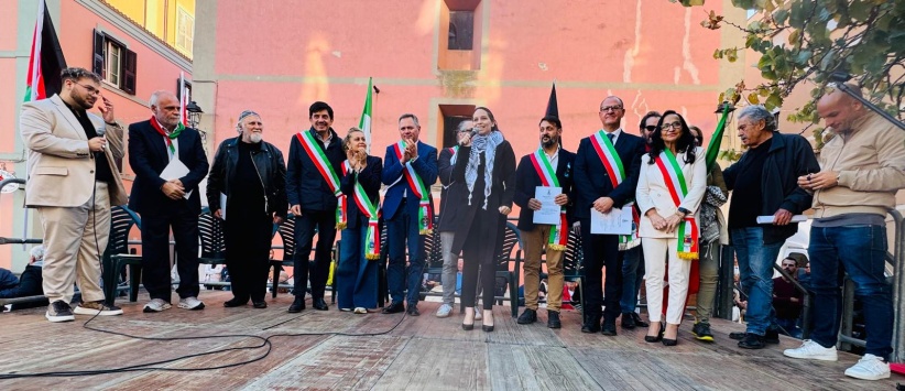 صدى الإعلام – في أجواء جماهيرية حاشدة ضمّت أبناء المدينة، وبحضور ثمانية رؤساء بلديات من مختلف المناطق، سلّم رئيس بلدية تشيفيتافيكيا سعادة السفيرة د. منى أبو عمارة، سفيرة دولة فلسطين، قرار الاعتراف بدولة فلسطين الذي صوّت عليه المجلس البلدي بالإجماع.