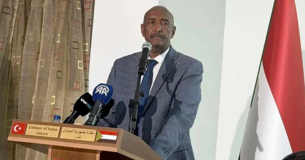 وأضاف البرهان، خلال لقائه شخصيات سودانية وتركية ومنظمات المجتمع المدني ووسائل الإعلام بمقر السفارة السودانية في العاصمة التركية أنقرة، أن “السودان لن يقبل بأي هدنة أو وقف لإطلاق النار” ما دامت قوات الدعم السريع “موجودة في أي شبر من أرض الوطن”، مشدداً على أن “استعادة الأمن وبسط سيادة الدولة يمثلان أولوية قصوى”.