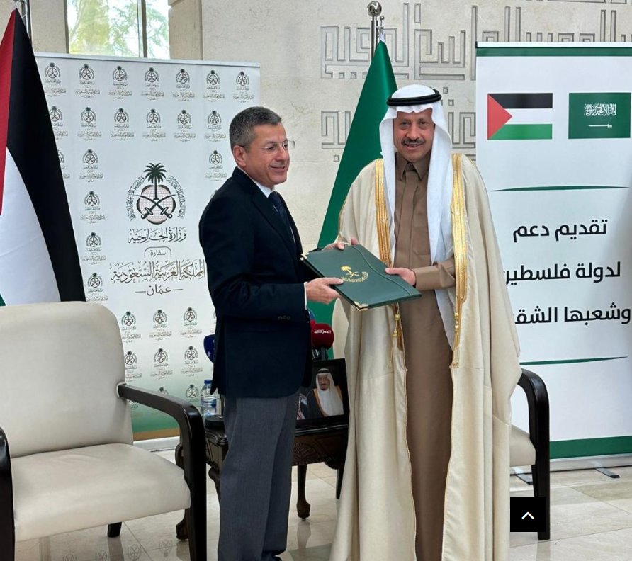 وجرى التسليم في مقر سفارة المملكة العربية السعودية بعمان، خلال لقاء وزير المالية الفلسطيني مع سفير المملكة العربية السعودية غير المقيم لدى دولة فلسطين، القنصل العام في القدس نايف بن بندر السديري.