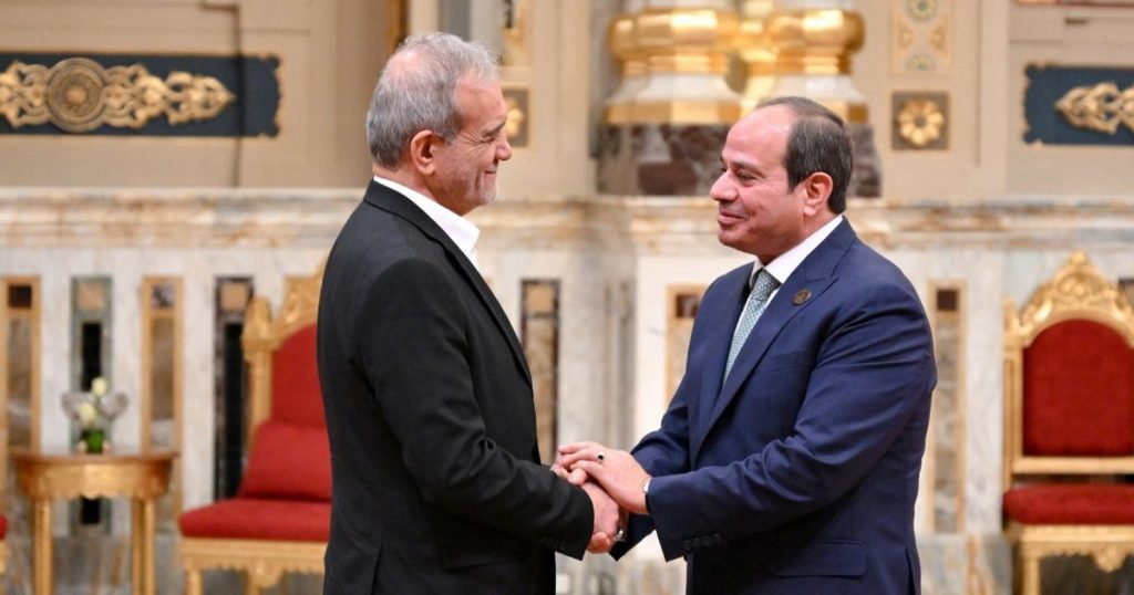 أكد الرئيس المصري عبد الفتاح السيسي لنظيره الإيراني مسعود بزشكيان، السبت، رفض مصر الكامل للتصعيد الإسرائيلي ضد إيران “لما يمثله من تهديد لأمن واستقرار الشرق الأوسط”.