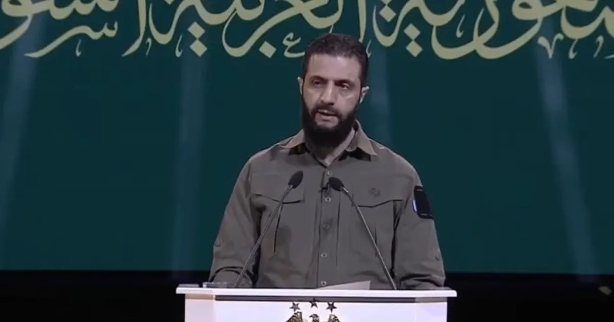 وقال الشرع في الكلمة التي ألقاها في قصر المؤتمرات بالعاصمة دمشق مرتدياً الزي العسكري إن “حقبة النظام البائد كانت صفحة سوداء في تاريخ بلدنا استحكم فيها المستبد حيناً من الزمن”.