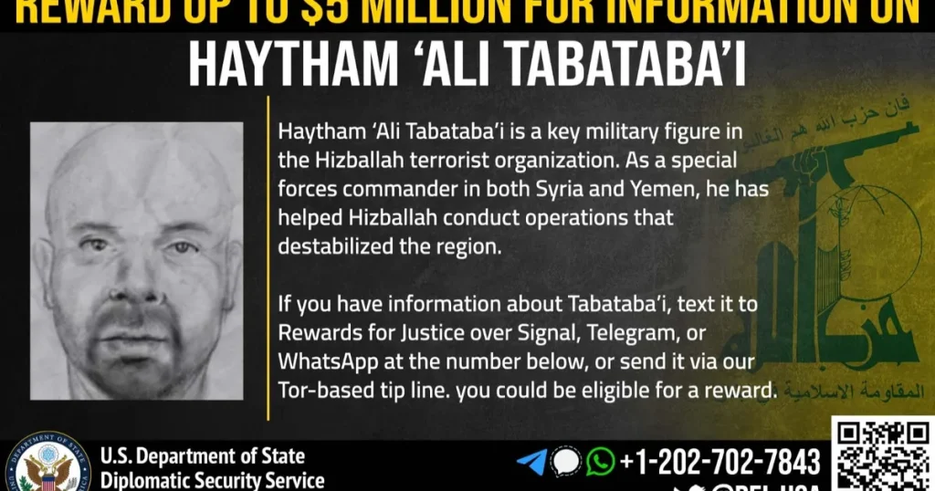 وشكلت أنشطة طبطبائي في سوريا واليمن جزءاً من جهود أوسع لـ”حزب الله” تهدف إلى توفير التدريب والعتاد والجنود لـ”دعم أنشطته الإقليمية لزعزعة الاستقرار”، بحسب الخارجية الأميركية.