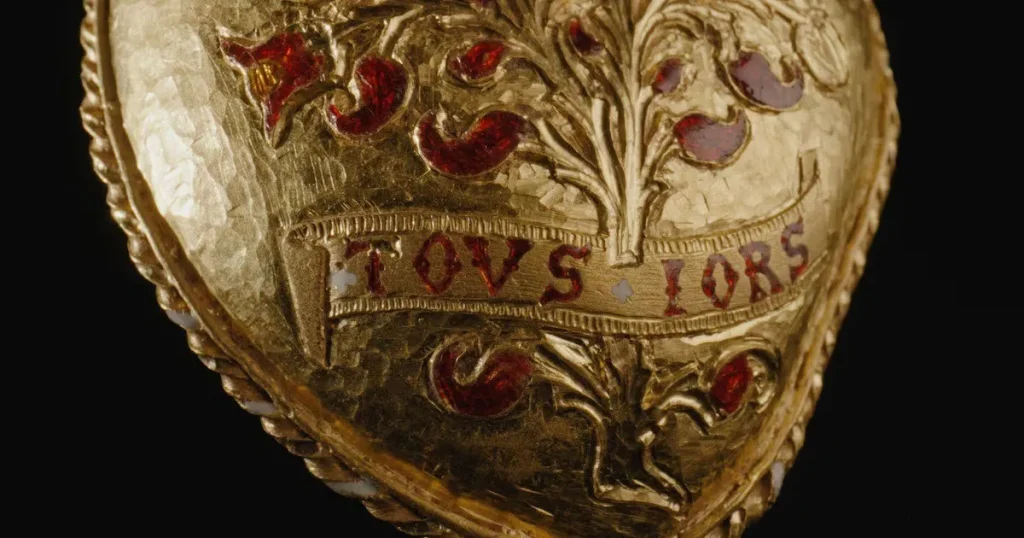 لم يستمر زواج هنري الثامن ملك إنجلترا وكاثرين، وحدث الطلاق في عام 1533، لكن قلادة ذهبية يتدلى منها قلب مرتبطة بزواجهما لا تزال باقية، وأصبحت متاحة الآن للعرض بشكل دائم في المتحف البريطاني.