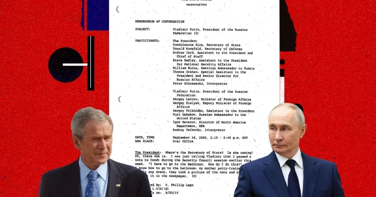 وقال بوش: “فيما يتعلق بالرابطة، اتفقنا على ضرورة إجراء حوار، حوار استراتيجي، تقوده وزارة الخارجية وبل بيرنز- أقصد نيك بيرنز- من جانبنا. حتى يفهم الجميع ما يريده الآخرون، وتُزال الشائعات، وتُفهم الاستراتيجيات والنوايا”. ورد بوتين بالقول: “بالضبط. نحن بحاجة إلى تنسيق أفضل وتجنب التناقضات”. وفي تلك الفترة حملت روسيا الولايات المتحدة المسؤولية عن اندلاع “الثورة البرتقالية” أواخر نوفمبر/تشرين الثاني 2004، التي حرمت حليفها فيكتور يونوكوفيتش من الفوز بالانتخابات، وأجبرت المحكمة العليا على إعادة الانتخابات بحجة التزوير، واستخدام موارد الدولة ليفوز فيكتور يوشينكو المقرب من الغرب في رئاسة أوكرانيا.