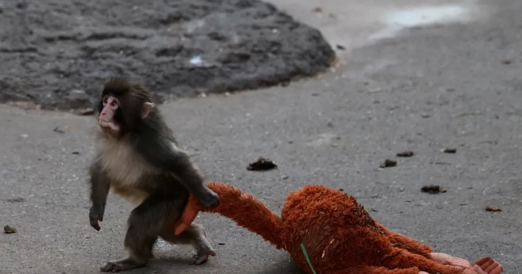 في حديقة حيوانات خارج العاصمة اليابانية طوكيو، أصبح قفص القردة مقصداً لا يمكن أن يفوته الزوار بفضل ثنائي لا ينفصل؛ هما القرد ⁠الصغير بانش ودميته المحشوة.