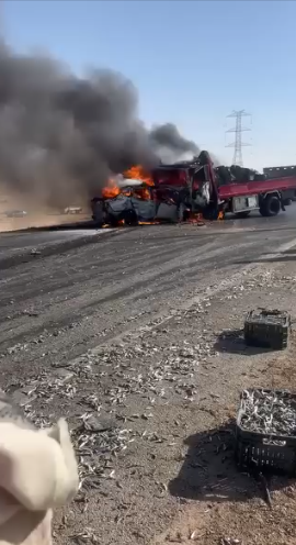 حادث تصادم سيارتين علي الطريق الصحراوي الشرقي بالمنيا
