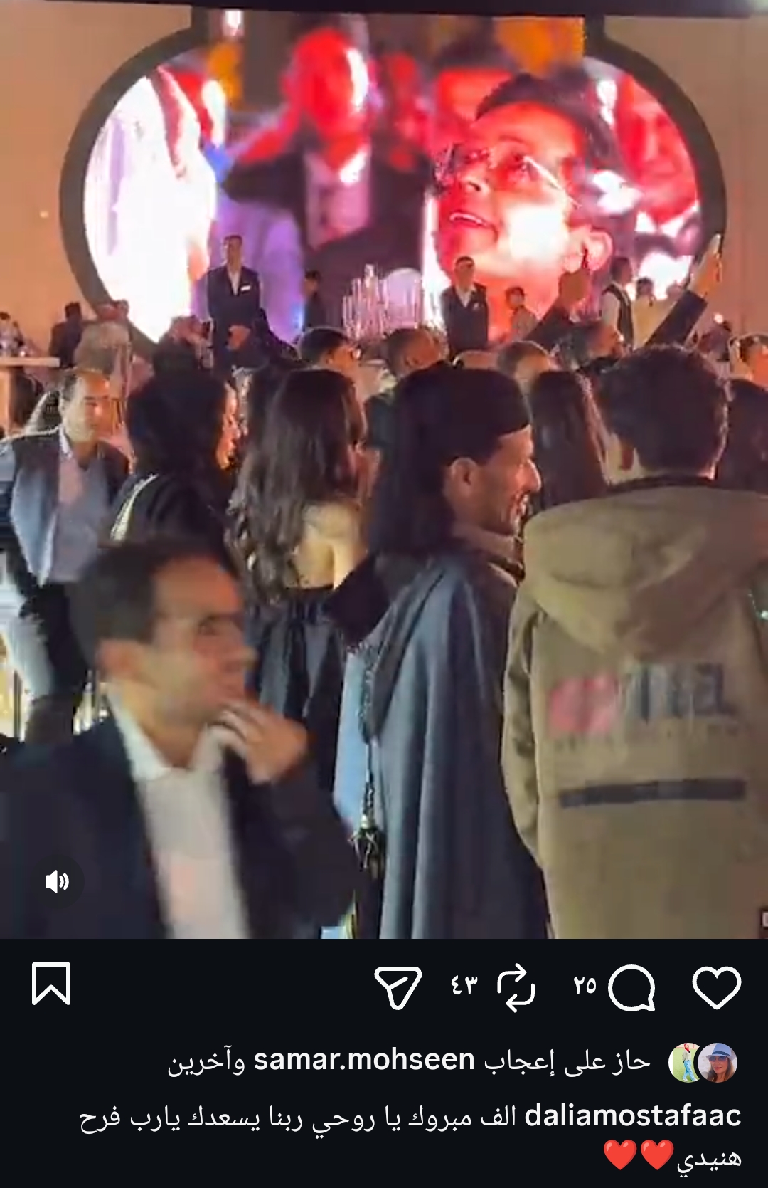 وعلقت داليا مصطفى، قائلة: “ألف مبروك يا روحي، ربنا يسعدك يارب، فرح هنيدي”.