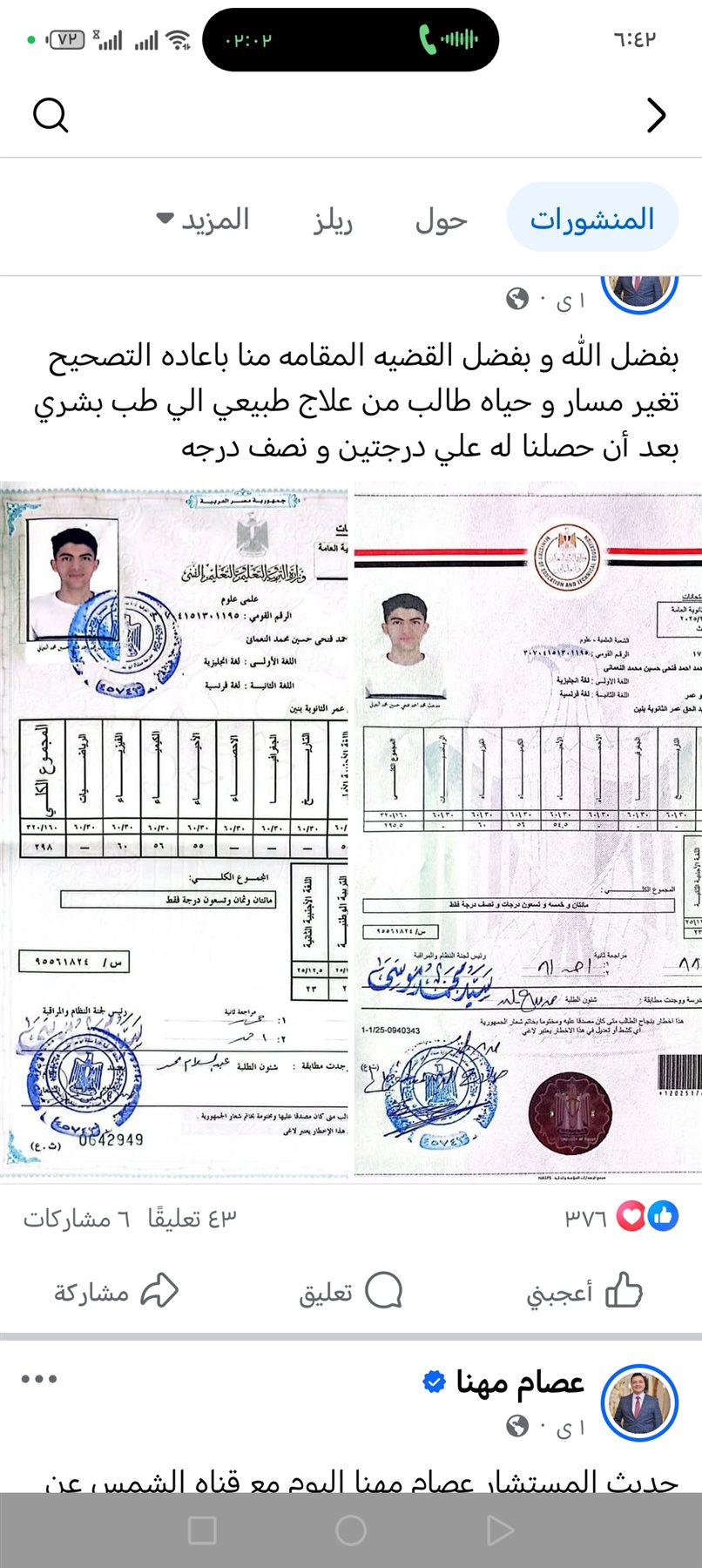 وفي السياق نفسه، أكد المستشار عصام مهنا محامي الطاعون نجاحه في إعادة حق طلاب آخرين، من بينهم طالب تم تحويل مساره من كلية «العلاج الطبيعي» إلى «الطب البشري» بعد إضافة درجتين ونصف.