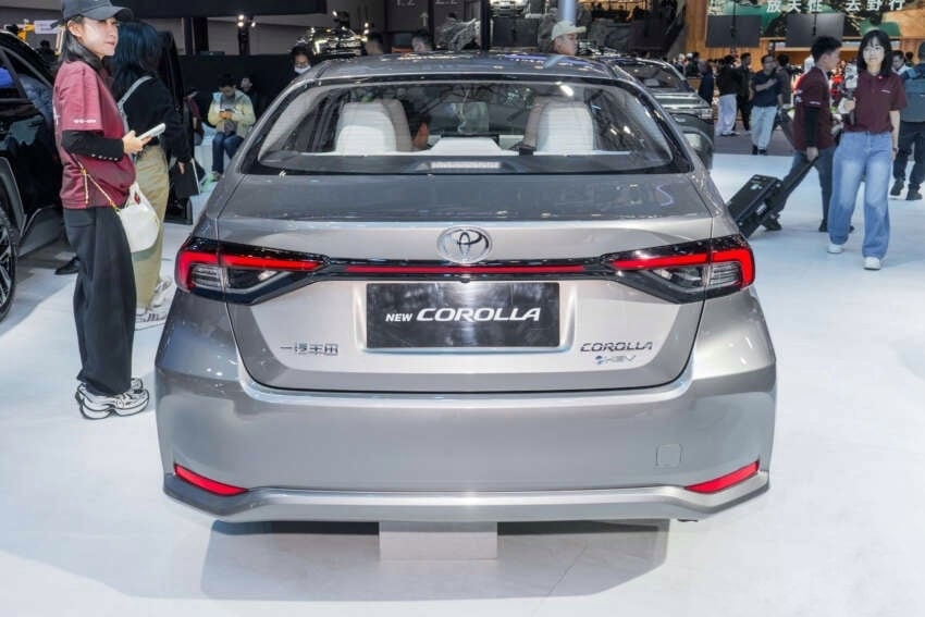 أما الناحية الخلفية فظهرت بشريط إضاءة أحمر يمتد بين المصابيح، مع عواكس ضوئية تعزز من الوضوح البصري، كما أضافت تويوتا جنوطًا بتصميم رياضي جديد ينسجم مع الطابع العام للسيارة، في محاولة لإضفاء جانب أنيق يتناسب مع مفهوم السيدان الرياضية.