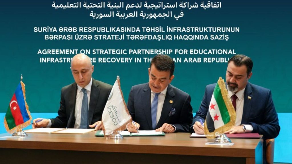 ونصت الاتفاقية الممتدة إلى 31 من كانون الأول 2030، على بناء شراكة استراتيجية بين أطرافها الثلاثة، إذ تتولى أذربيجان العملية التمويلية، فيما تشرف “الإيسيسكو” على تنفيذ بنود الاتفاق بالتعاون مع الجهات السورية المعنية.