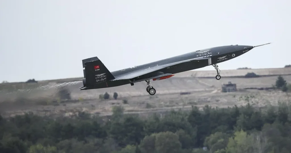 أعلنت شركة “بايكار” (BAYKAR) التركية أن طائرتها المسيّرة القتالية Kizilelma نفّذت ثاني اختبار طيران وهي محملة بقنبلة TEBER-82 الموجهة بالليزر ونظام الملاحة العالمي بالأقمار الاصطناعية (GNSS)، بوزن 500 رطل، من إنتاج شركة “روكيتسان” (Roketsan).