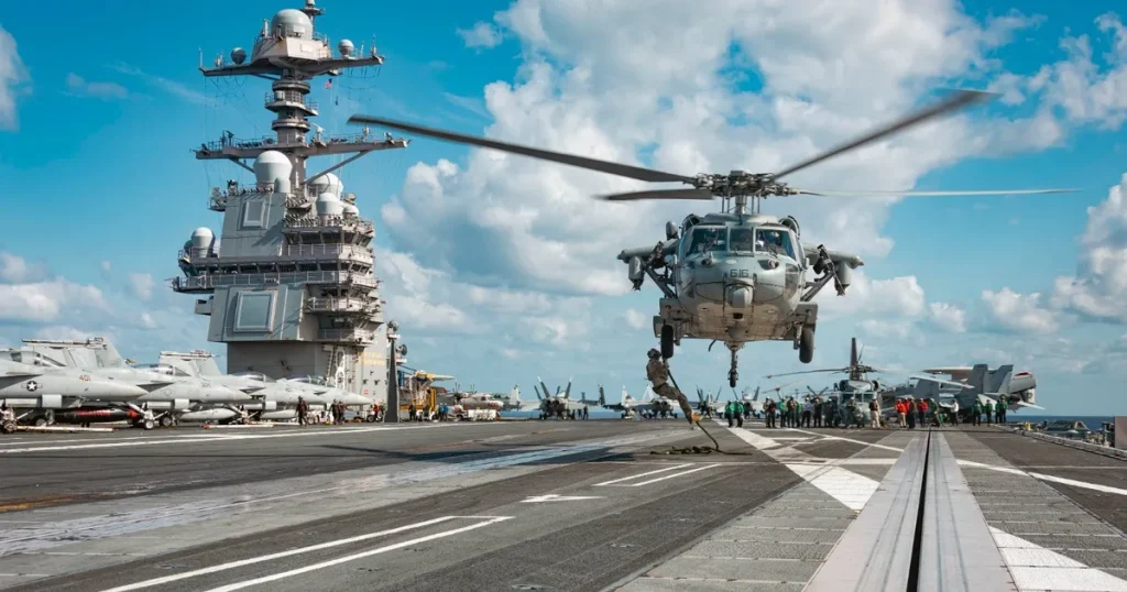وشاركت الطائرات الحربية التابعة للحاملة جيرالد فورد، في هجوم 3 يناير، على كاركاس، والذي أسفر عن اعتقال الرئيس الفنزويلي نيكولاس مادورو.