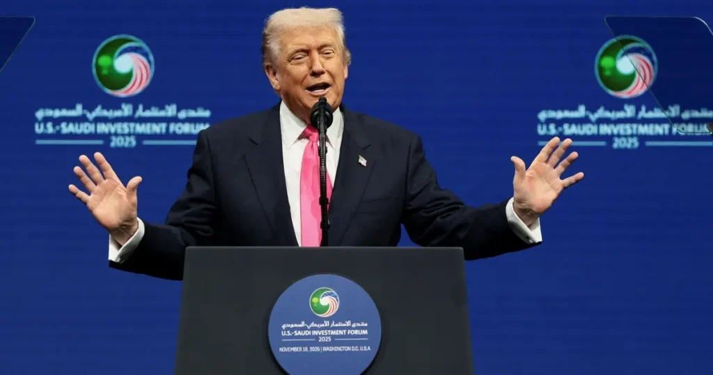 وقال ترمب خلال خطابه في منتدى الاستثمار الأميركي السعودي، الذي حضره مع ولي العهد السعودي الأمير محمد بن سلمان: “أحب أصدقائي المحافظين. أحب شعار لنجعل أميركا عظيمةً مجدداً، لكن هذه هي ماجا”، وأضاف: “سيعلّم هؤلاء الناس شعبنا كيفية صنع الرقائق، وفي غضون فترة قصيرة، سيحقق شعبنا نجاحاً باهراً. ويمكن لهؤلاء الناس العودة إلى ديارهم”.