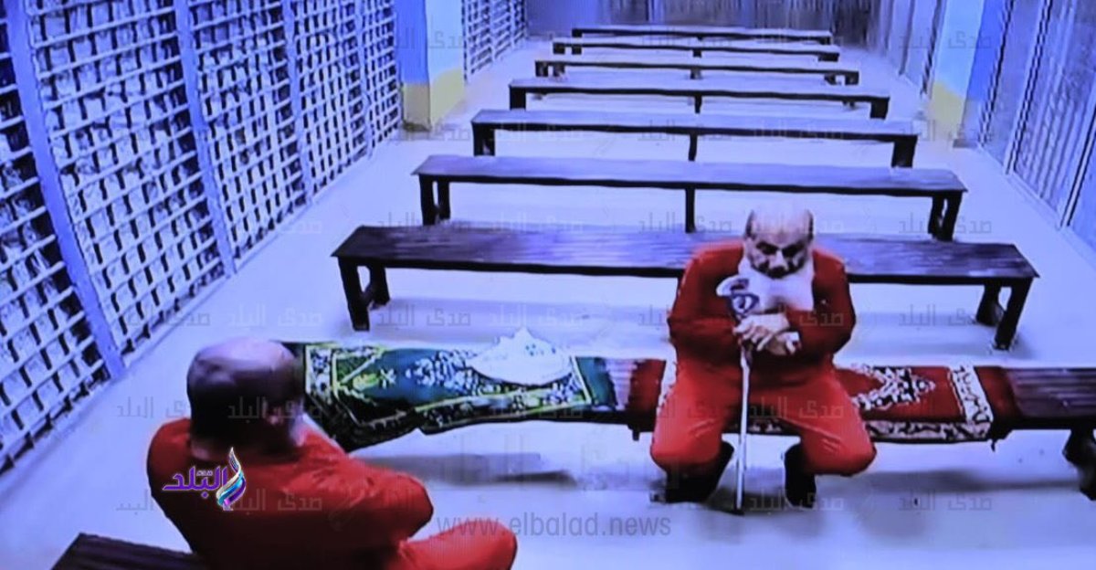 وكان حجازي بحسب الصورة التي انتشرت على نطاق واسع، يجلس مقابل سجين آخر معه على كرسي طولي فيما شوهدت إلى جانبه سجادة صلاة.