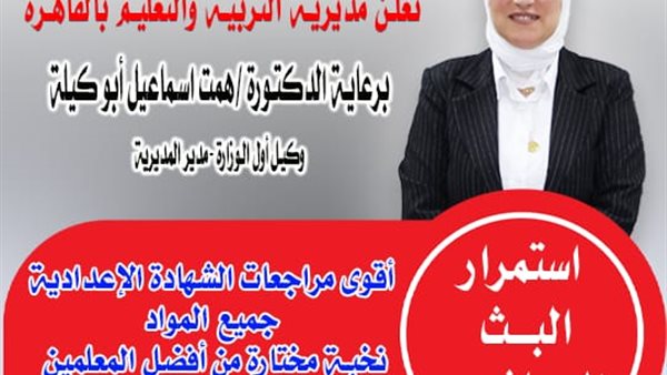 تواصل مديرية التربية والتعليم بالقاهرة جهودها لدعم طلاب الشهادة الإعدادية، من خلال استكمال البث المباشر للمراجعات النهائية للفصل الدراسي الأول للعام الدراسي 2025/2026، وذلك وفق الجدول الزمني المعلن عبر منصات المديرية.