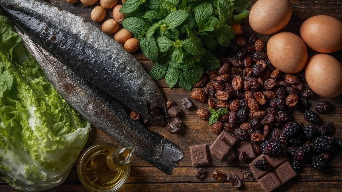 - الشوكولا الداكنة والكاكاو الخام: غنية بالفلافونويدات التي تزيد تدفق الدم إلى الدماغ وتحسّن الوظائف المعرفية عند تناولها باعتدال.