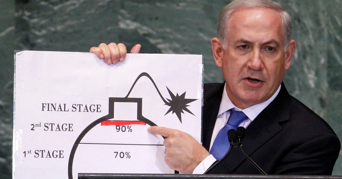 وفي 2012، قدَّم نتنياهو أمام الجمعية العامة للأمم المتحدة رسماً كاريكاتيرياً يُظهر ما وصفه بتقدم إيران نحو امتلاك القنبلة النووية، وهو مشهد أثار اهتماماً واسعاً.