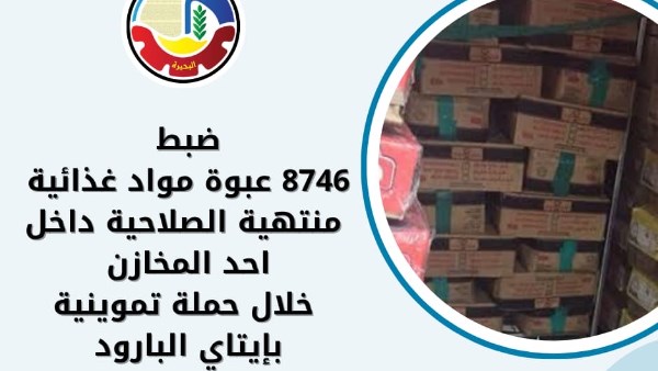وقامت مديرية التموين والتجارة الداخلية برئاسة محمد رجب هدية، وبالتنسيق مع مباحث التموين، بتنفيذ حملة مكثفة بمركز إيتاي البارود، أسفرت عن ضبط 8746 عبوة مواد غذائية منتهية الصلاحية داخل أحد المخازن، وكمية من الأسماك المجمدة منتهية الصلاحية.