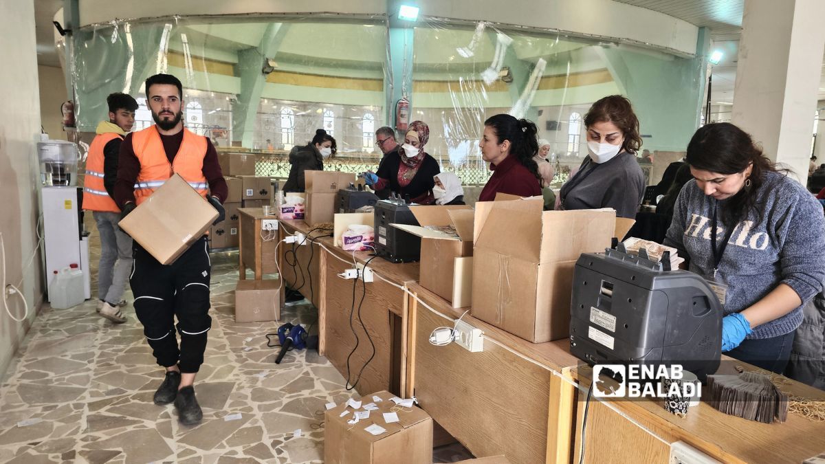 فريق مختص من الجهاز المركزي للرقابة المالية يقوم بالتدقيق في عملية اتلاف العملة السورية القديمة في مركز الاتلاف بمدينة المعارض في ريف دمشق - 3 شباط 2026 ()