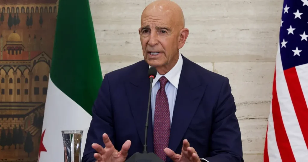 وتابع المبعوث الأميركي يقول إن سوريا حققت على مدى الـ13 شهراً الماضية خطوات تاريخية نحو الاستقرار والمصالحة الوطنية وإعادة الإعمار، وأشار إلى “المحادثات التاريخية” التي عُقدت هذا الأسبوع بين ممثلين من سوريا وإسرائيل باعتبارها “خطوة محورية نحو سلام إقليمي أوسع”.