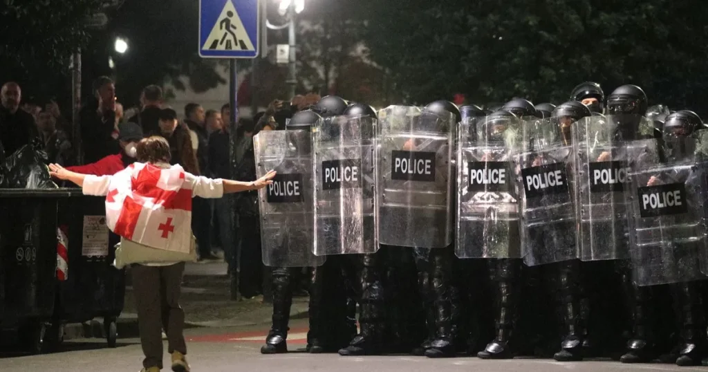 قال رئيس وزراء جورجيا إراكلي كوباخيدزه، الأحد، إن المتظاهرين الذين سعوا إلى دخول القصر الرئاسي بالقوة، الجمعة، كانوا يحاولون إسقاط الحكومة، واتهم الاتحاد الأوروبي بالتدخل في شؤون البلاد، وهي الاتهامات التي نددت بها بروكسل باعتبارها “معلومات مضللة”.