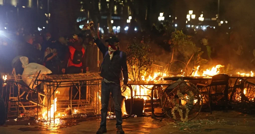وحاولت مجموعة من المحتجين دخول القصر الرئاسي بالقوة، بعد أن دعت بعض شخصيات المعارضة إلى “ثورة سلمية” ضد حزب الحلم الجورجي الحاكم.