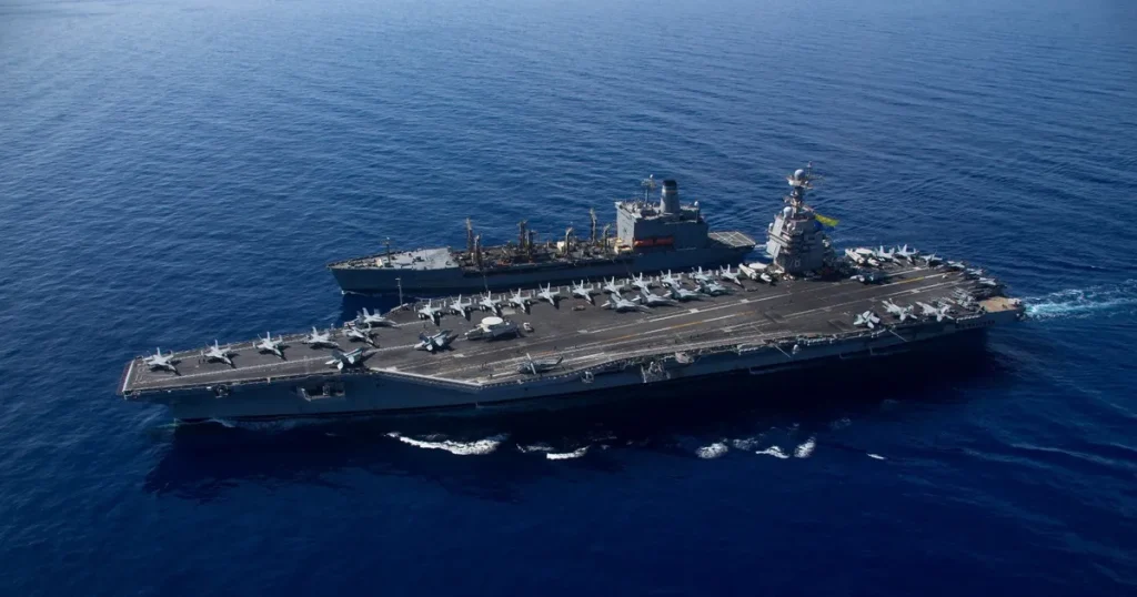 شاركها فيسبوك تويتر لينكدإن بينتيريست تيلقرام البريد الإلكتروني وصلت الحاملة النووية الأميركية جيرالد فورد إلى مياه أميركا اللاتينية، قرب فنزويلا، مزودة بمفاعلين نوويين و90 طائرة وطائرات مسيرة، ونظام رادار متطور، مع قدرة على تنفيذ 270 طلعة يوميًا، ما يجعلها محور أي تصعيد محتمل.