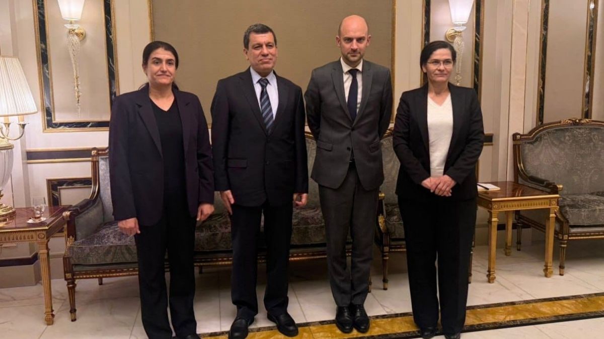 كشف “المركز الإعلامي” التابع لـ”قسد” عن اجتماع عُقد في مدينة أربيل بإقليم كردستان العراق، جمع قائد القوات، مظلوم عبدي، ووزير الخارجية الفرنسي، جان نويل بارو. وحضر اللقاء شخصيات قيادية بارزة، من بينها القائدة العامة لـ”وحدات حماية المرأة”، روهلات عفرين، والرئيسة المشتركة لدائرة العلاقات الخارجية في “الإدارة الذاتية”، إلهام أحمد.