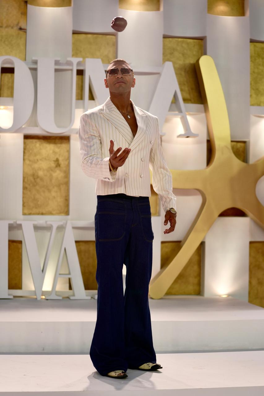 في اليوم الأول من فعاليات المهرجان، ظهر حسن أبو الروس بإطلالة لافتة كعادته، حيث ارتدى بدلة غريبة التصميم مع حذاء لونه أحمر صارخ، ما جعله محط أنظار الحضور وعدسات المصورين والحضور.