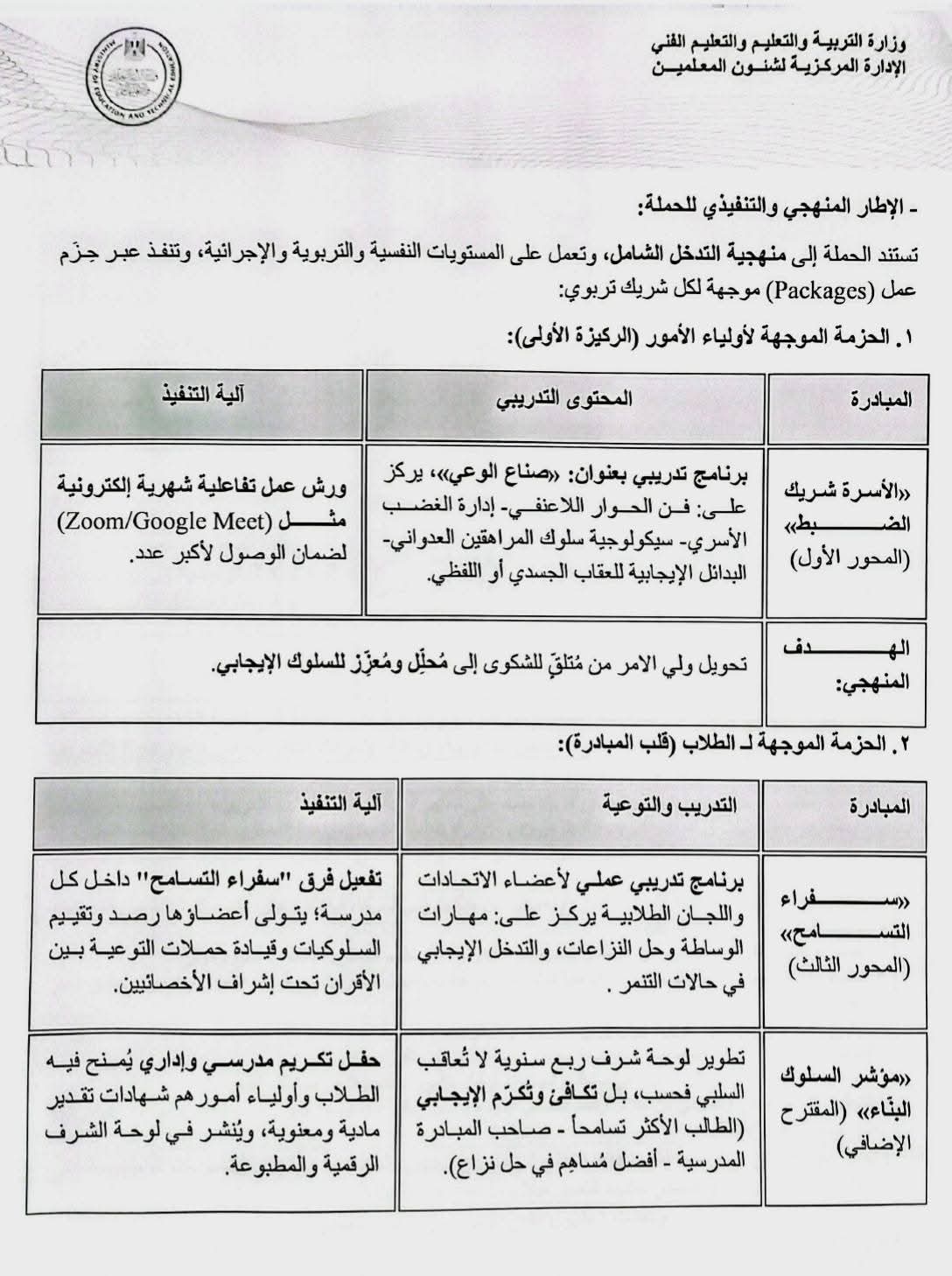 وأكدت وزارة التربية والتعليم أن إطلاق هذه الحملة يأتي ضمن استراتيجيتها لبناء الإنسان المصري الواعي، مشددة على أن حماية النشء تمثل أولوية قصوى ومسؤولية وطنية مشتركة تتطلب تكاتف جميع أطراف العملية التعليمية.