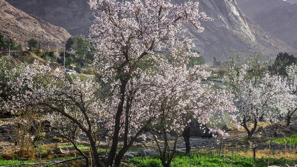 في هذا الموسم القصير، الذي يمتد عادة من أواخر فبراير وحتى مارس، تتزين الأشجار بزهورها البيضاء المائلة إلى الوردي، فتغطي الأغصان قبل ظهور الأوراق، في مشهد يرمز إلى البدايات الجديدة ويجسد دورة الحياة في قلب الصحراء. وتنتشر أشجار اللوز أمام البيوت البدوية، وفي المزارع والمخيمات البيئية والسياحية، لتشكل مع الجبال خلفية طبيعية آسرة تعكس خصوصية المكان.