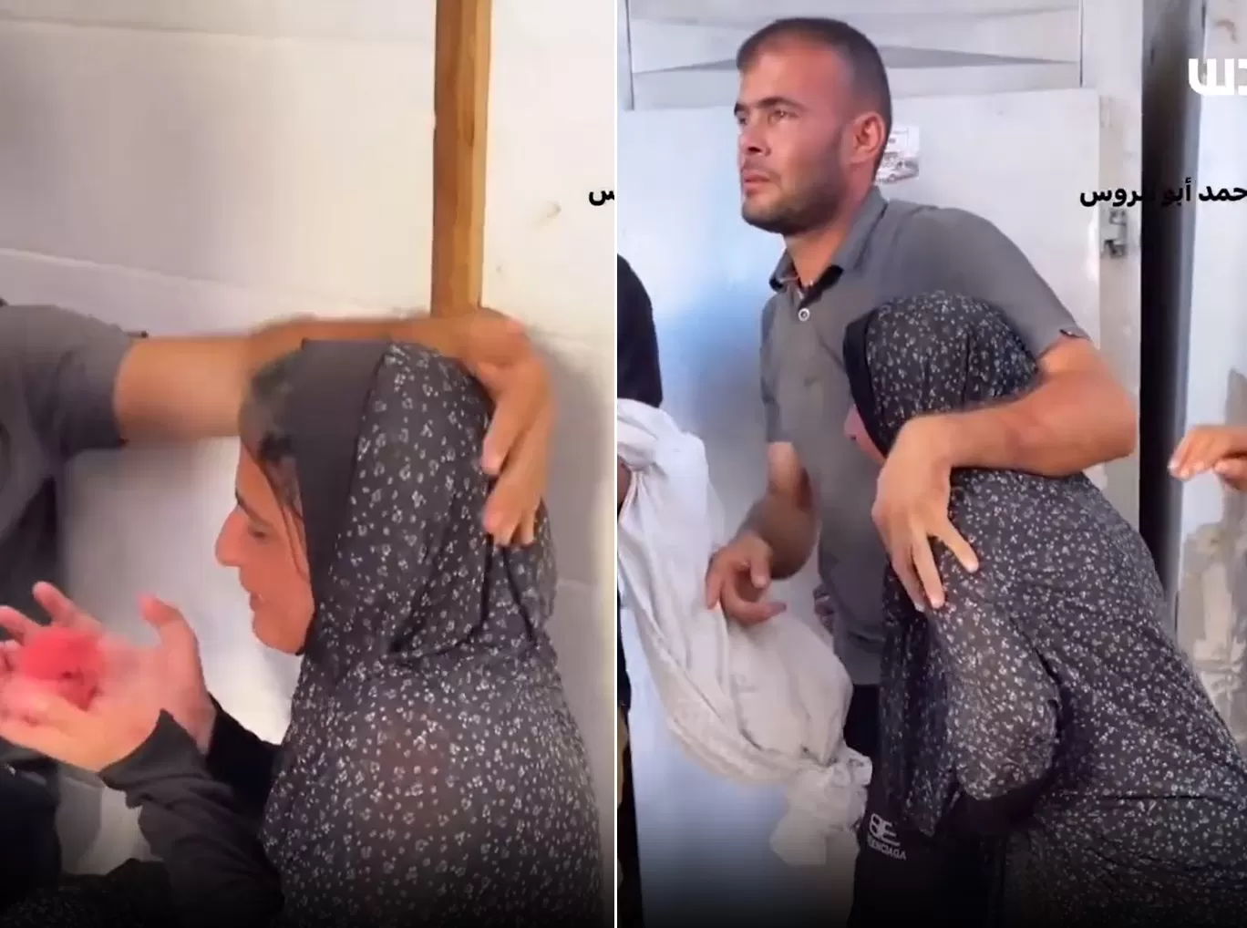 وشوهد المواطن الفلسطيني، في مقطع الفيديو، وهو يحتضن طفلته وبجانبه تجلس والدتها التي ظهرت وهي منهارة من البكاء حزنا على فراق “الصغيرة” التي قتلها جيش الاحتلال.