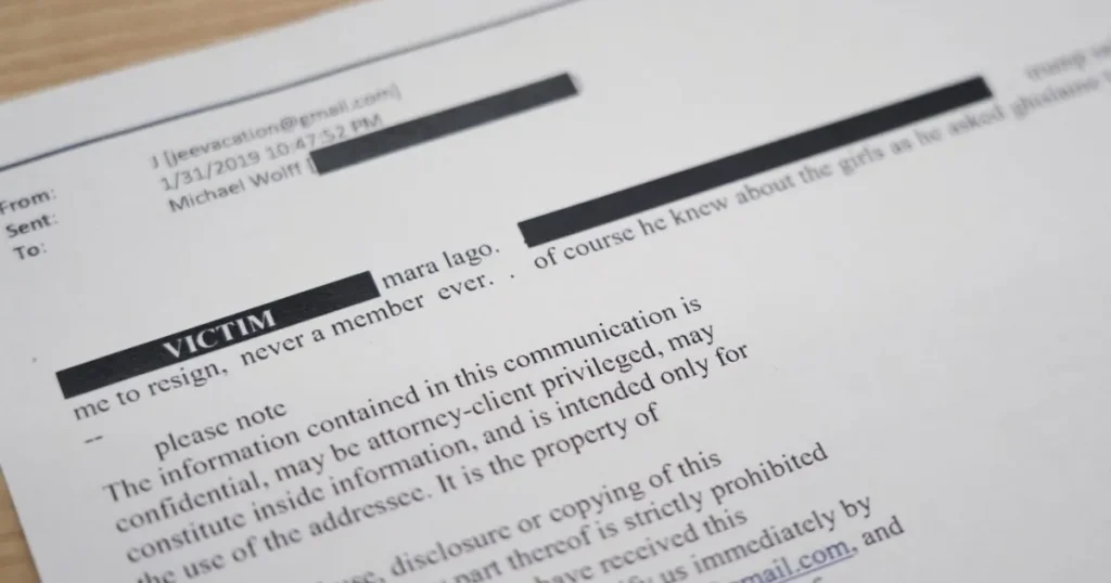 وفي إحاطة إعلامية، اتهمت كارولين ليفيت المتحدثة باسم البيت الأبيض الديمقراطيين بحجب اسم الضحية في رسائل البريد الإلكتروني المنشورة، لأن الضحية هي فرجينيا جوفري، التي توفيت منتحرة في أبريل الماضي، ولم تتهم ترمب بأي مخالفات في مذكراتها التي نشرت بعد وفاتها.