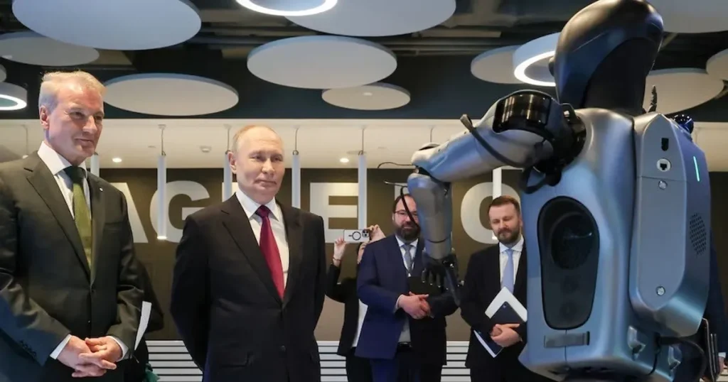 وقال الروبوت لبوتين: “اسمي جرين. أنا أول روبوت روسي شبيه بالبشر ومزود بذكاء اصطناعي مدمج.. هذا يعني أنني لست مجرد برنامج على شاشة، بل تجسيد مادي للتكنولوجيا”.