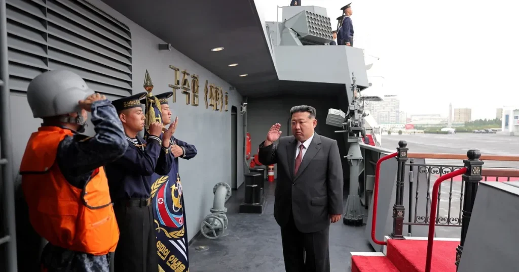 ذكرت وكالة الأنباء المركزية الكورية أن زعيم كوريا الشمالية كيم جونج أون تفقد المدمرة البحرية “تشوي هيون” خلال معرض عسكري، الأحد.