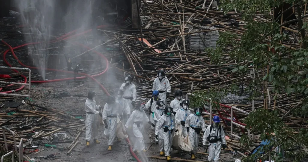 وأشارت السلطات إلى أن استخدام شبكات بلاستيكية رديئة الجودة ورغوة عزل مخالفة للمعايير خلال أعمال التجديد في مجمع “وانج فوك كورت”، أسهم في تغذية حريق سرعان ما امتد إلى سبعة أبراج سكنية شاهقة يقطنها أكثر من أربعة آلاف شخص.