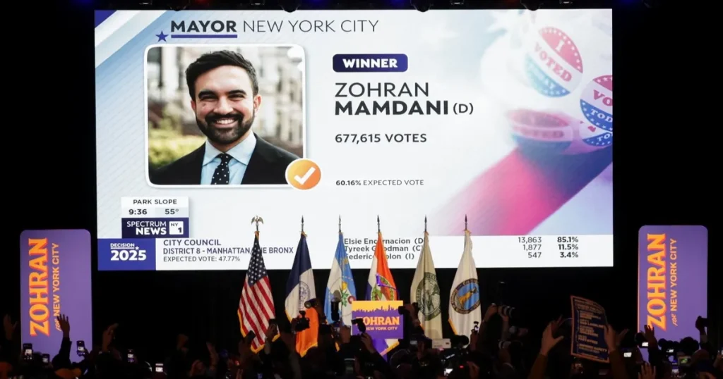 حقق المرشح الديمقراطي زهران ممداني الفوز في انتخابات عمدة مدينة نيويورك، متقدماً على منافسيه أندرو كومو، الحاكم السابق لولاية نيويورك، وكيرتس سليوا من الحزب الجمهوري، وفق ما أظهرته النتائج الأولية بعد فرز أغلبية الأصوات.